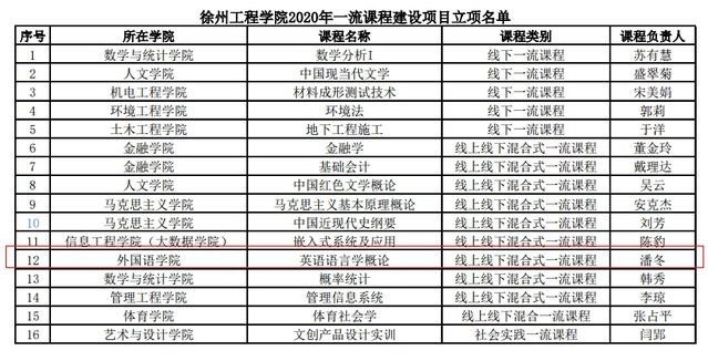 为积极响应教育部一流课程建设“双万计划”,贯彻落实一流课程建设推进计划,推动学校课程建设的优化升级与规划布局,对标教育部“金课”的“两性一度”的建设标准,深入推进课堂教学改革,学校组织开展了2020年度校级一流课程建设立项暨省级、国家级一流课程遴选培育工作。经学院推荐、专家评审,“英语语言学概论”获校内建设培育。