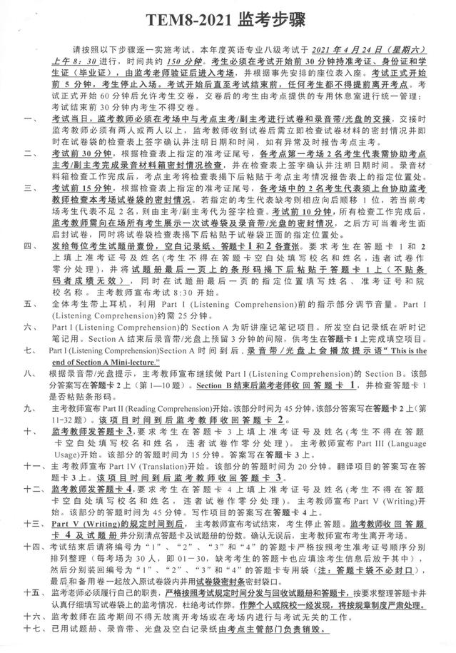 注:1. 请监考老师自带耳机, 全程佩戴口罩。