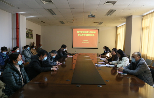 12月6日下午,7790cnm必发集团在敬业楼912会议室召开高校教师师德失范案例警示教育专题学习会。会议由学院党委书记周珊珊主持,全体教师参加学习。