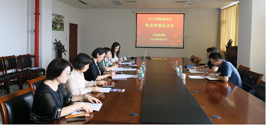 张院长介绍了我院的基本情况,表达了我院申报CATTI国际版考试考点的强烈意愿。双方就相关合作细则展开了详细的讨论,加深了对彼此的了解和相互认可,达成很多共识。论证会进展顺利,为考点尽快落户我校打下了良好的基础。