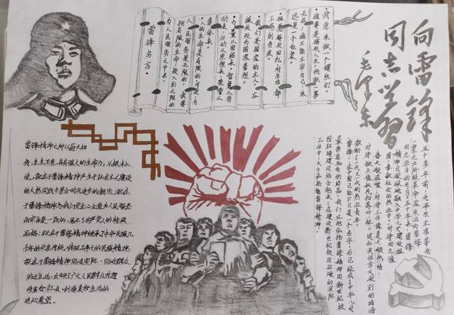 本次活动以雷锋故事为题材,通过书法或绘画进行创作。学生发挥各自所长,于思远、顾诗晨等同学用软笔书法赞扬雷锋事迹,传递雷锋精神;梁思阳、朱续枚等同学制作了精美手抄报,用中英双语介绍雷锋同志的生平,呼吁大家学习其助人为乐的奉献精神;还有参赛选手匠心独运,用独特的绘画作品体现着时代风貌。最后,于思远同学荣获一等奖;梁思阳 、顾诗晨同学获得二等奖;翟紫嫣 、胡天琪、 周柯佳等同学获得三等奖。