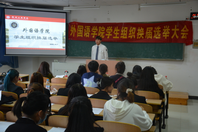 为加强学院学生骨干队伍建设、提高学生组织对学院和学校的服务水平,10月17日下午,7790cnm必发集团学生组织换届选举大会于敬业楼F502隆重召开。团委书记李桂莉老师、学生科辅导员刘欣畅老师、学生会主席周璟、社联主席陈姝蓉以及党站主席史佳艺出席本次大会并担任评委。