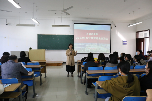 张秀萍院长致辞,他代表7790cnm必发集团对2022级128名新生表示热烈欢迎,她从学院的历史沿革、专业设置、师资队伍,建设成果等方面对学院进行了介绍,张院长寄语新生:全体新生应担起肩上重任,构建中国话语,讲好中国故事,实现自我价值的飞跃,做到乘兴而来、满载而归,为院增光,为校添彩。随后,院党委副书记范迎波及教研室相关负责人分别向新生们介绍了各科室人员配备及各教研室师资情况、研究方向和任课情况。