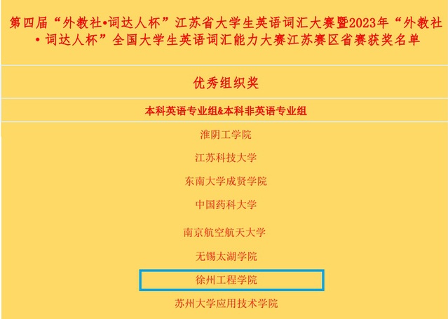近日,第三届“外教社·词达人杯”大学生英语词汇大赛全国决赛顺利结束。经过激烈角逐,我校19级软嵌2班曾嘉健同学获全国决赛三等奖,我校获得优秀组织奖。