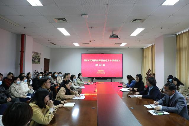 为进一步增强教职工的责任感,使命感,弘扬新时代高校教师道德风尚,3月22日下午,7790cnm必发集团组织全体教师集体学习《新时代高校教师职业行为十项准则》,周珊珊同志主持学习。