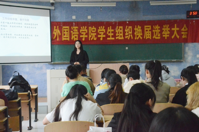 本次换届工作本着公开、公平、公正的原则,择优选拔。经过自主报名、资格审查环节后,共有54名候选人进入竞聘演讲环节。竞选现场,选手结合PPT就个人情况、岗位认知、竞选优势及今后工作设想规划等方面进行了精彩演讲,各候选人胸有成竹、侃侃而谈,富感染力,赢得各位老师的赞许。最后,院党委副书记范迎波做总结讲话。在讲话中,范书记明确了对学生干部的要求,提出要坚守政治立场,牢记责任意识,服务工作切实到位。此外范书记着重强调,学生干部须立足专业,重视学业;做人做事须努力奋进,力争上游;工作开展须善于总结,不断改进,并以对本届大会圆满成功的祝福与对学生会各部门合作求新的殷切期望结束讲话。