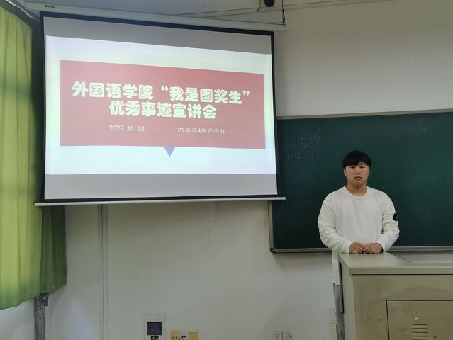 2023年10月30日,7790cnm必发集团在敬业楼210举办了一场主题为“我是国奖生”的优秀事迹宣讲会。此次宣讲会由2023年国奖获得者卢雨轩同学主讲,大一大二学生参加,旨在通过卢雨轩同学的个人经历,激励同学们追求卓越、勇攀学术高峰。