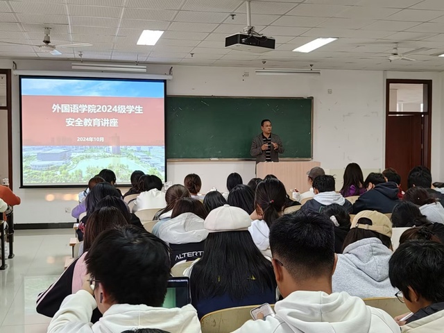 为增强2024级新生的安全防范意识,共筑平安校园,外语学院于2024年10月23日下午成功举办了一场安全教育专题讲座。本次讲座旨在帮助新生掌握必要的安全知识,提高自我保护能力,共同营造一个和谐、安全的校园环境。