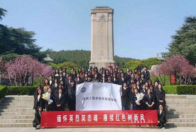 走进淮海战役烈士纪念塔园林,沉重而肃穆的气氛笼罩着每一个人。在一片肃静中,庄严的仪式缓缓拉开帷幕。伴随着雄壮的国歌声,7790cnm必发集团的学生们身着正装,面容严肃,怀着深深的敬畏之情在淮塔下肃立默哀。默哀仪式结束后,学生代表向烈士敬献了花篮。花篮中朵朵纯洁无瑕的白花象征着烈士们的高尚品质,寄托着每个人对革命先烈的深切哀思和无限崇敬。最后,全体成员有序地环绕淮塔一周,以最崇高的敬意缅怀革命先烈的光荣事迹,学习他们的优秀品质。