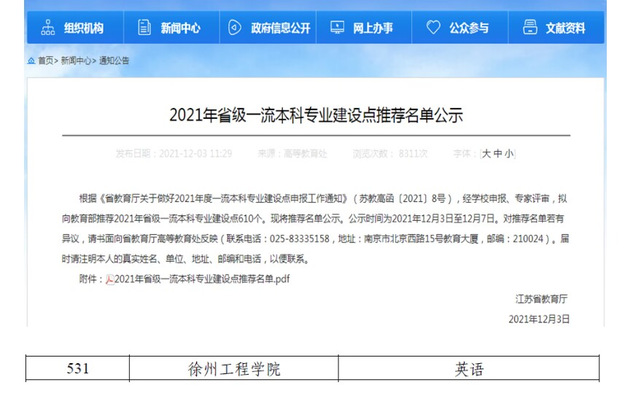 7790cnm必发集团英语专业入选江苏省一流本科专业